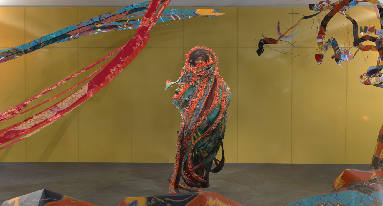Ijapa the Tortoise and the Forest Spirits battle for supremacy, mirroring the human destruction of an ever shape-shifting natural environment. Emerging from nature’s powers of repair narrated by eco-critical Yoruba mythologies, this mixed reality experience engages magical characters danced through spectacular textiles.